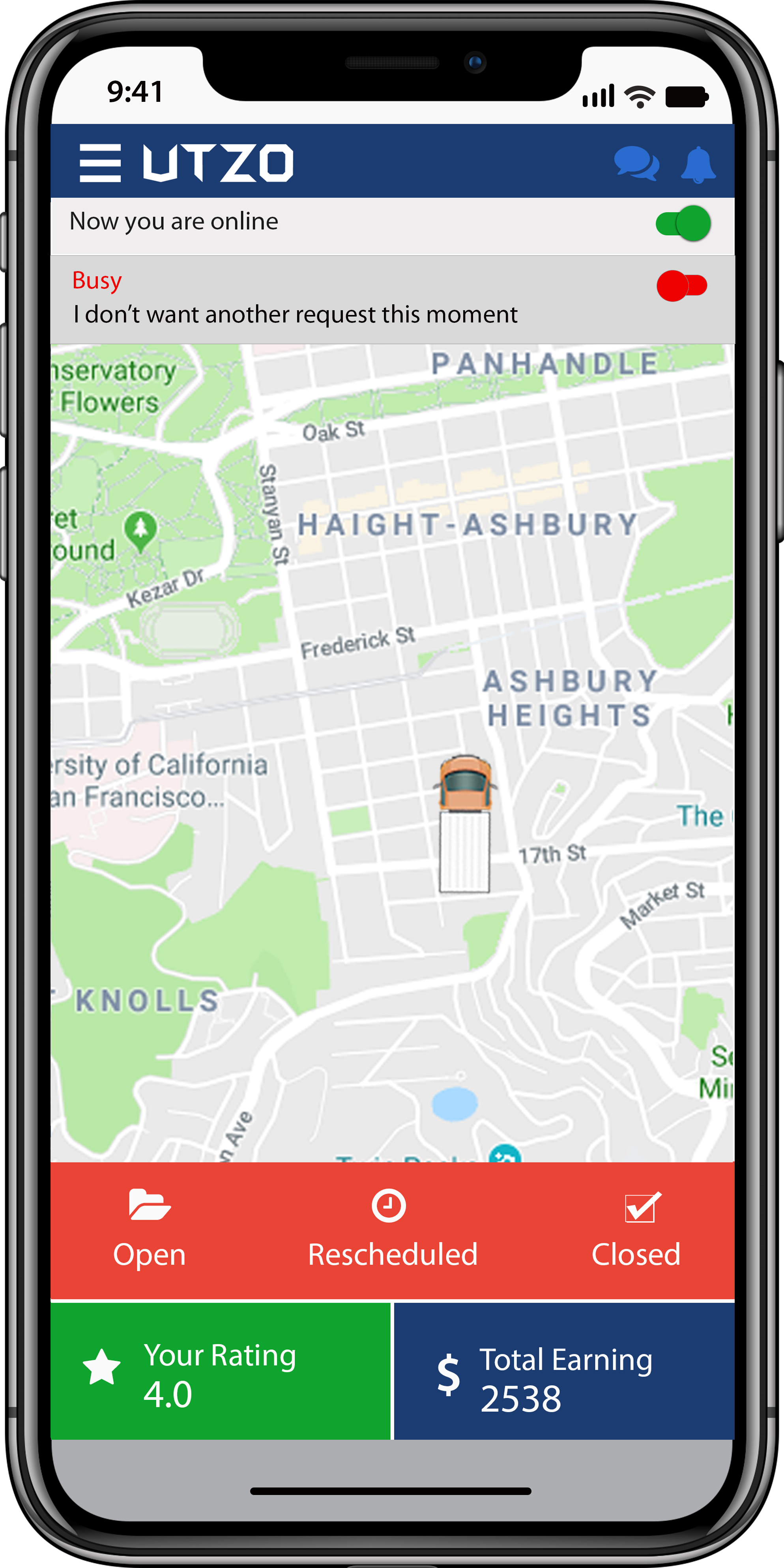 The UTZO Dispatch Genius system enables the service companies to track the moving status of each service truck while it’s heading to the customer location. This system lets the service companies to view the route line of their moving service trucks in real time. It also allows them to view the distance that the service trucks have left to cover in real time as well.
